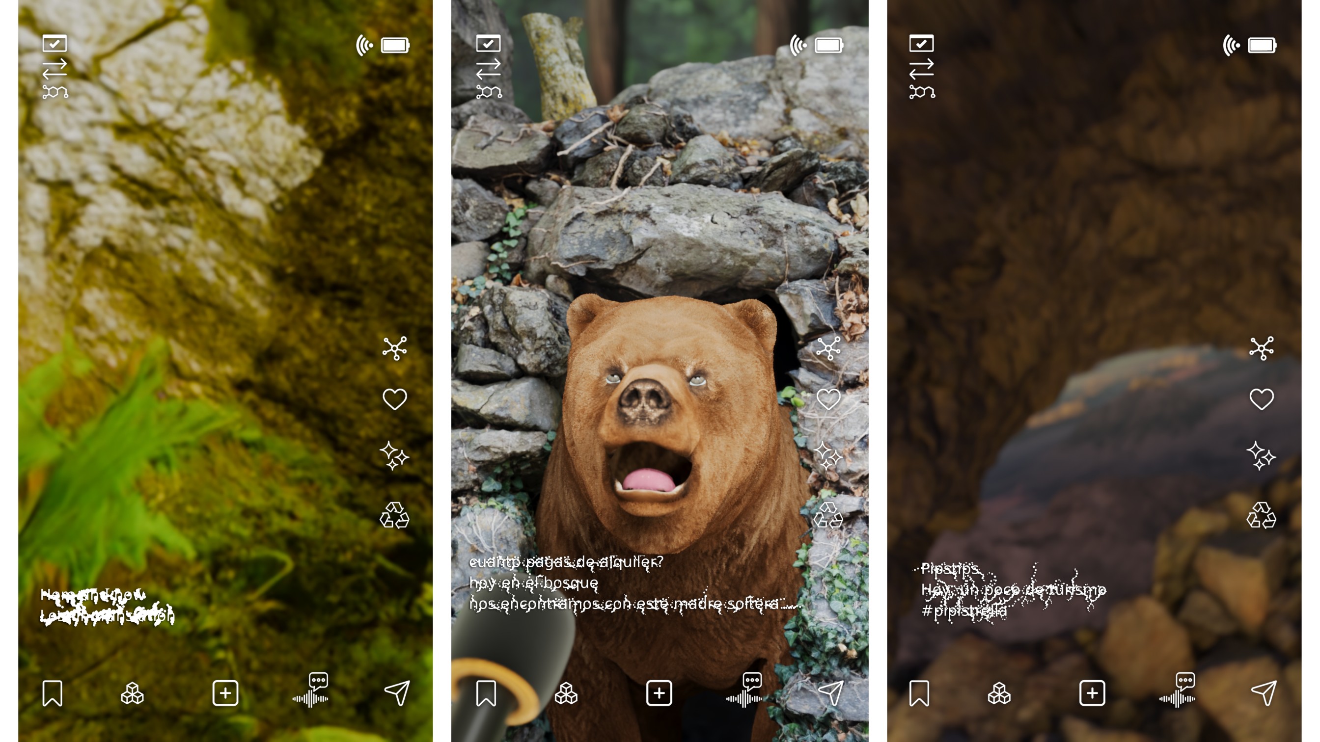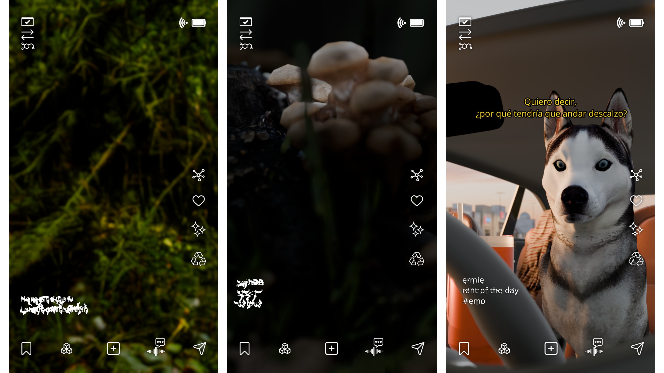 Commissioned by the Bienal Climática, pov reframes climate change through plant and animal perspectives. Drawing on facts, observations, and anecdotes gathered during research, the project takes the form of social media–like vignettes posted by non-human actors. Using fiction and humour, it reinterprets online socialization systems to shift attention toward more-than-human viewpoints, presented through familiar formats such as GRWM videos, ASMR reels, and other short-form content.